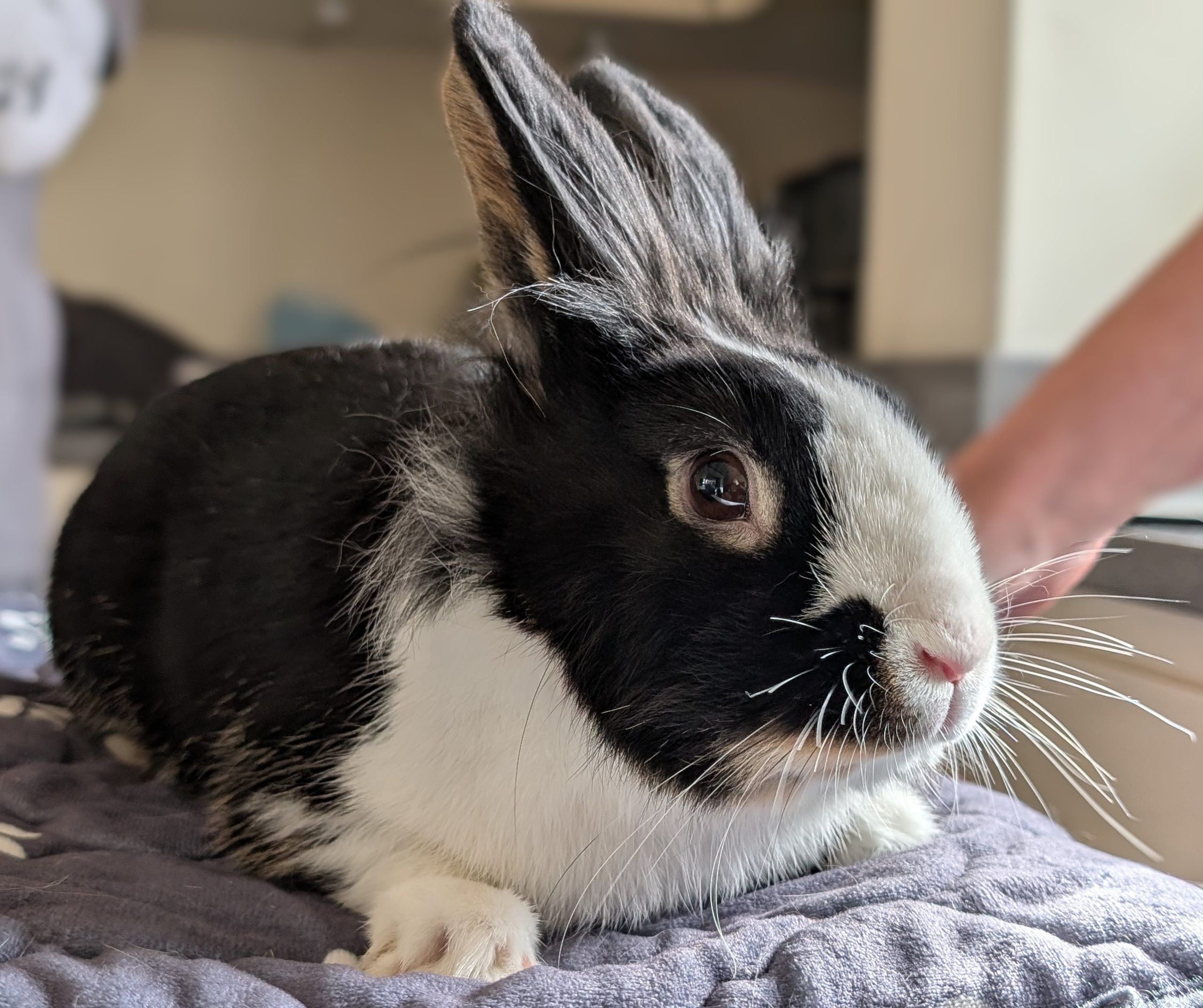 Gill Manning2026-04-04T12:27:02+01:00Sophie is lucky to be alive after being dumped outside a vets. She's a smashing black and white English cross rabbit with distinctive markings. She weighs 2.8kg and has been vaxed, healthchecked and neutered. Sophie is a lovely girl, but nervous, so would be suitable for a home with older children or adults. She'd [...read more]
