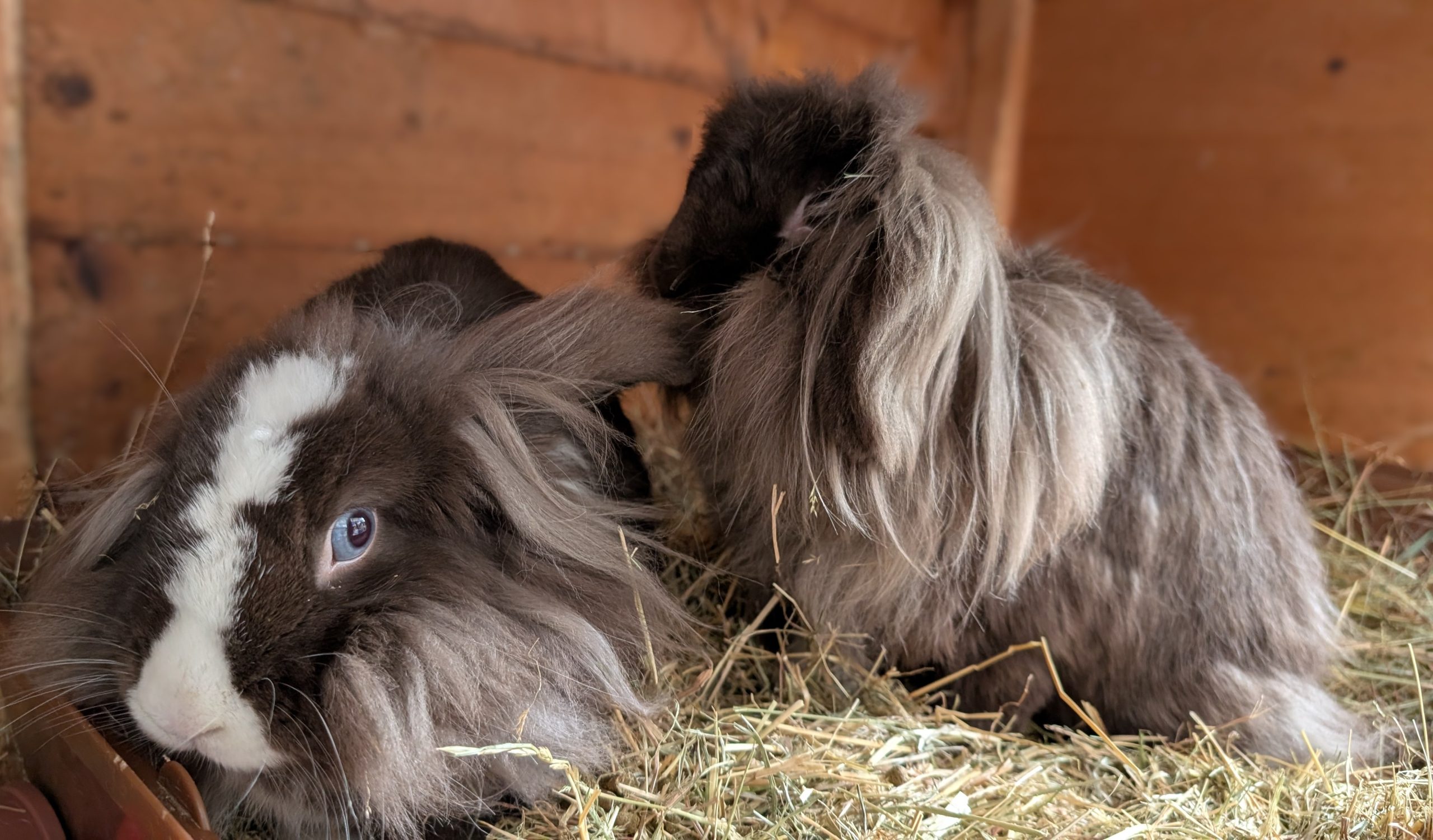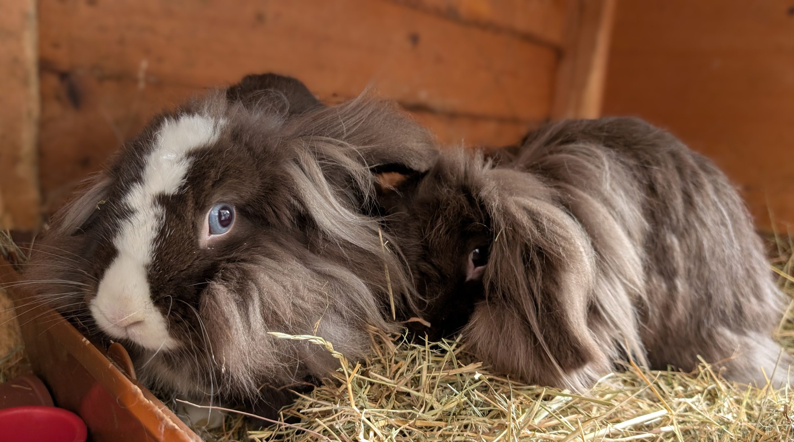 Bonnie and Clyde are a great pair of bunnies with fun personalities. These four year olds both weigh about 2.2kg making them medium-sized rabbits. Bonnie is the dark grey girl and Clyde has a white flash down his nose. They’ve come into rescue as their family were leaving the country. Their coats will need some maintenance and the occasional clip as they are lionhead-cross breed and are fairly hairy! Clyde has a medical issue which may need monitoring, but it doesn’t currently cause him any problems. More information available on request. Could you adopt them?