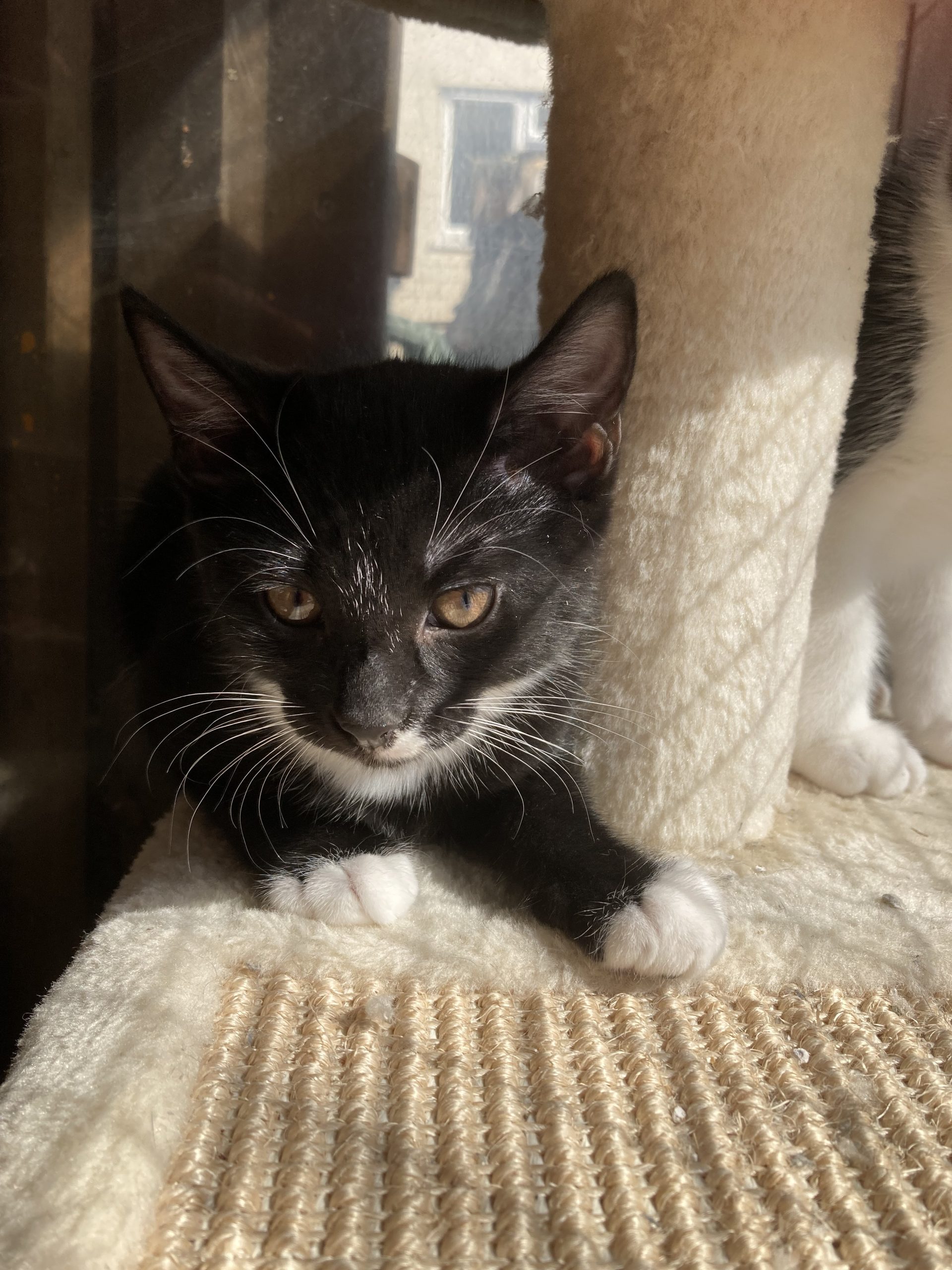 Eloise, who is the calmest of the litter, was born in the home of an 85 year old lady, to a cat she took on as a stray, not realising the cat was pregnant. Despite being born in a home, the kittens were clearly not handled very much and are fearful of being stroked and held by humans. They are getting used to their foster mum and she can now stroke them and pick them up but they do hiss and sometimes shake, so are not yet fully comfortable with being handled. A new owner will need to be an experienced cat owner who is committed to socailising Eloise further ( we usually find this happens more quickly once the kitten is separated from its litter mates but we do not have the foster home capacity to do this at the moment.)