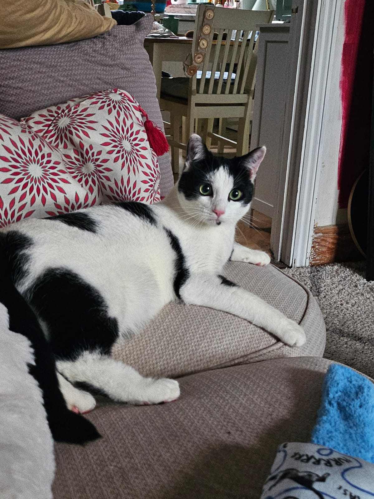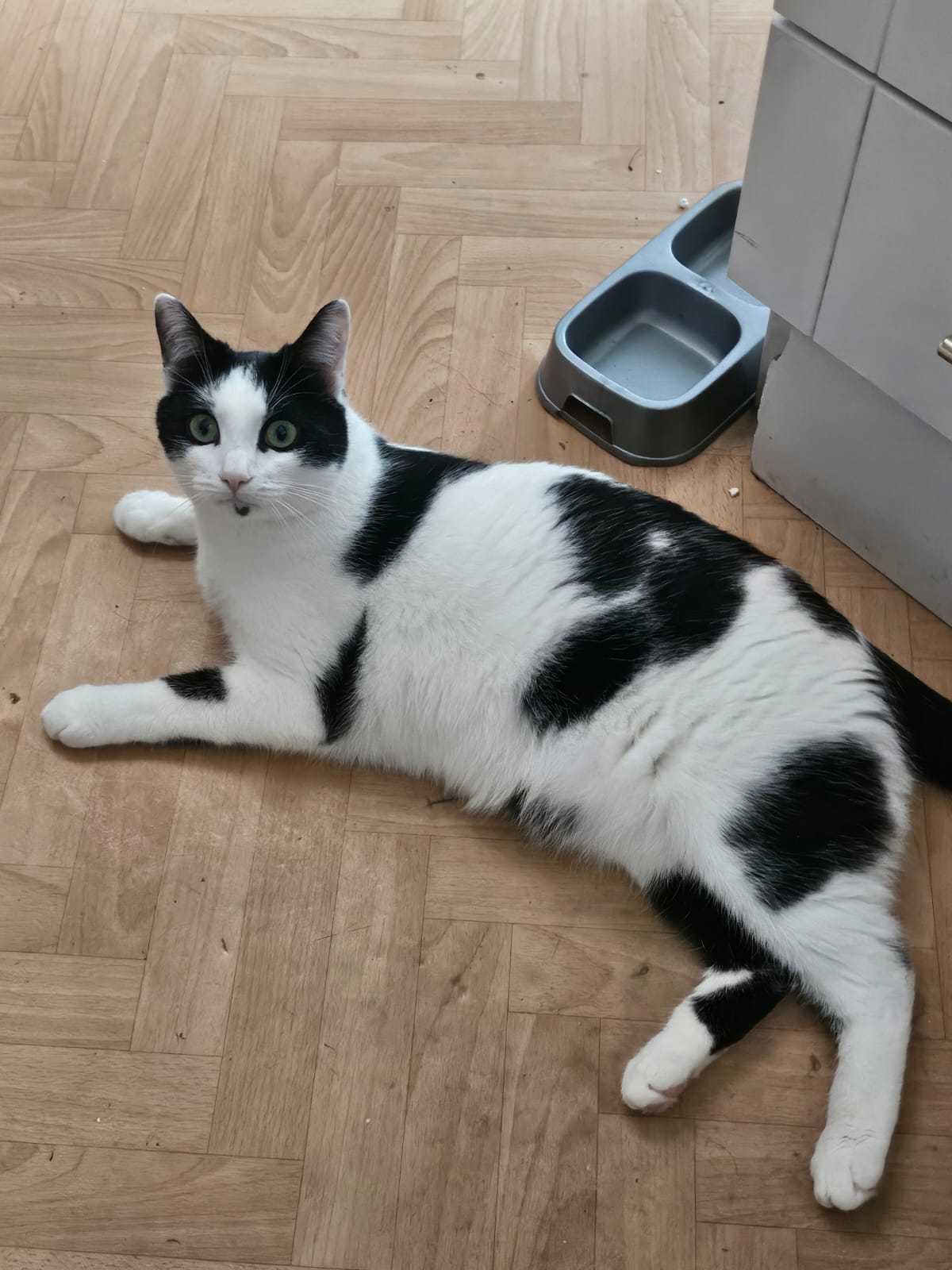 FOSTER HOME UPDATE: Milo made himself very much at home as soon as he arrived at his foster home. He explored his new temporary home then settled himself on the sofa to sleep. He is a friendly fellow. He is a very sweet boy who is reaaly affectionate, although he occasionally bites when he is excited. He has strated to go out in the garden and loves this. He also loves his food!