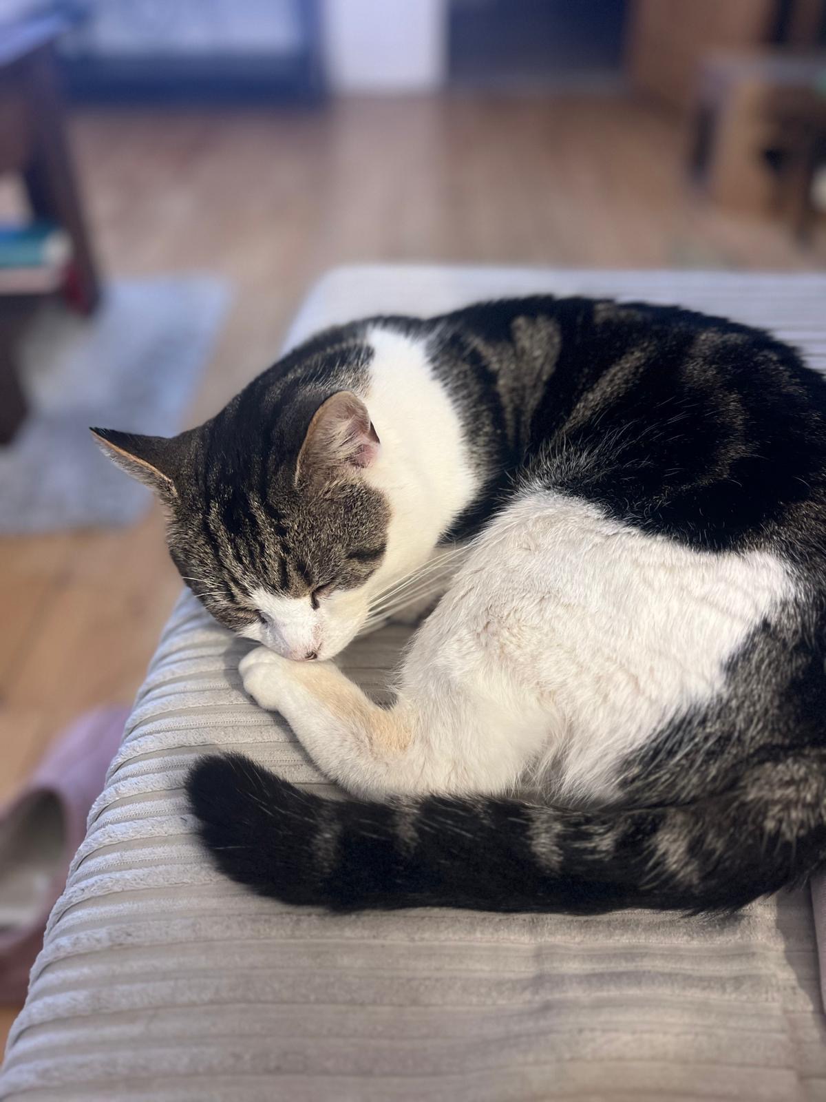 FOSTER HOME UPDATE: Tiger is doing very well and settling into home life well. He likes to cuddle up on the sofa. He does still nip when he is feeling overwhelmed but this has got much better. He is eating well too. His mouth still looks a bit sore and red when he yawns but he doesn’t seem to be in pain. He’s a lovely boy